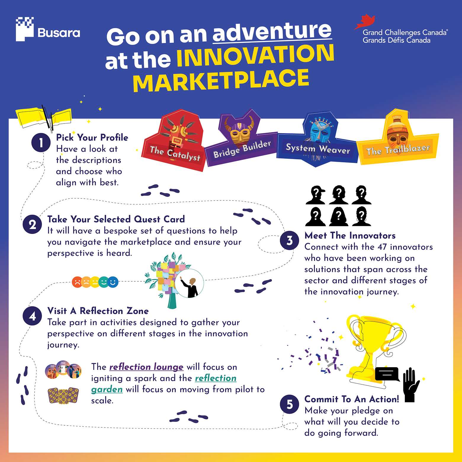 Throughout the session, interactive reflection stations will invite attendees to step into different stages of the innovator's journey and engage in activities designed to exchange insights about the challenges innovators face on the path to scale. Located at the entrance, among the innovator booths, and at the exit, these stations will encourage participants to pause and reflect on questions such as: What kinds of evidence carry the most weight in propelling innovations to scale? How do early testers navigate uncertainty or limited resources? What support is needed to turn a problem into a spark for innovation?